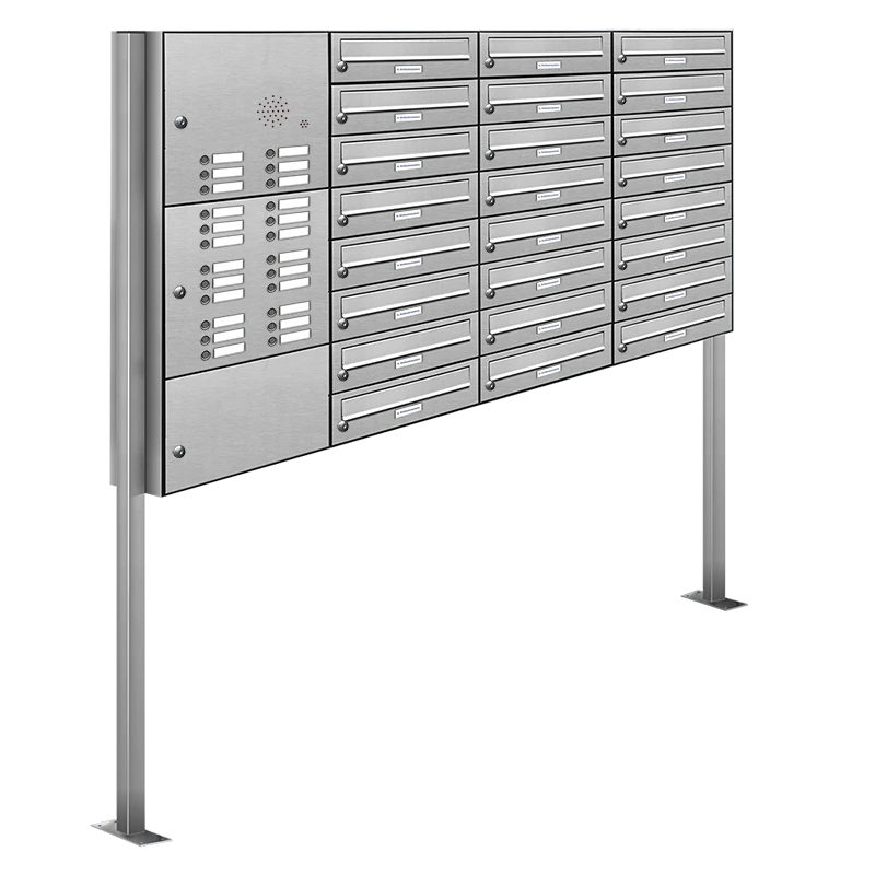 24 Fächer Briefkasten auf Standfuss, Teil-Edelstahl