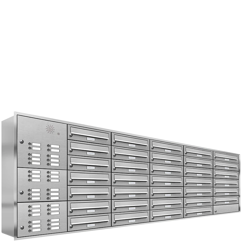 Teil-Edelstahl Unterputz-Briefkasten, 34 Fächer